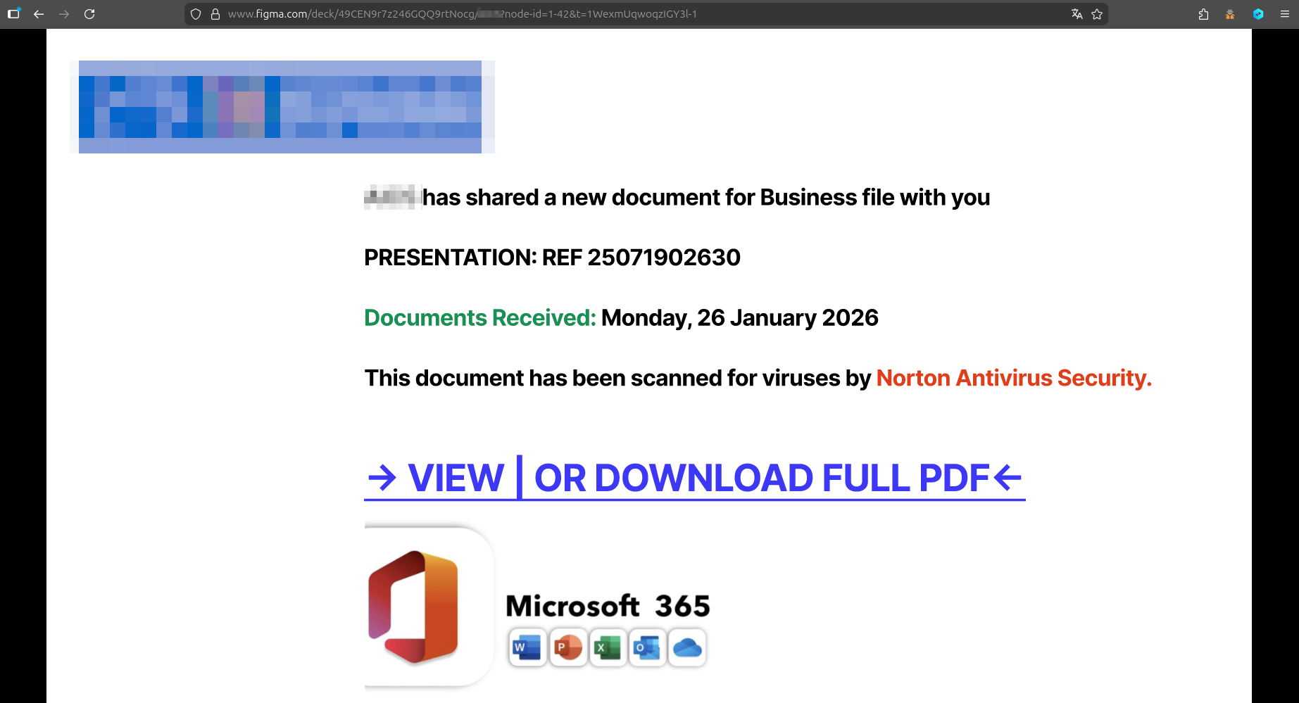 Sfruttate utenze della PA compromesse per tentare il furto di credenziali Microsoft 365 tramite Figma