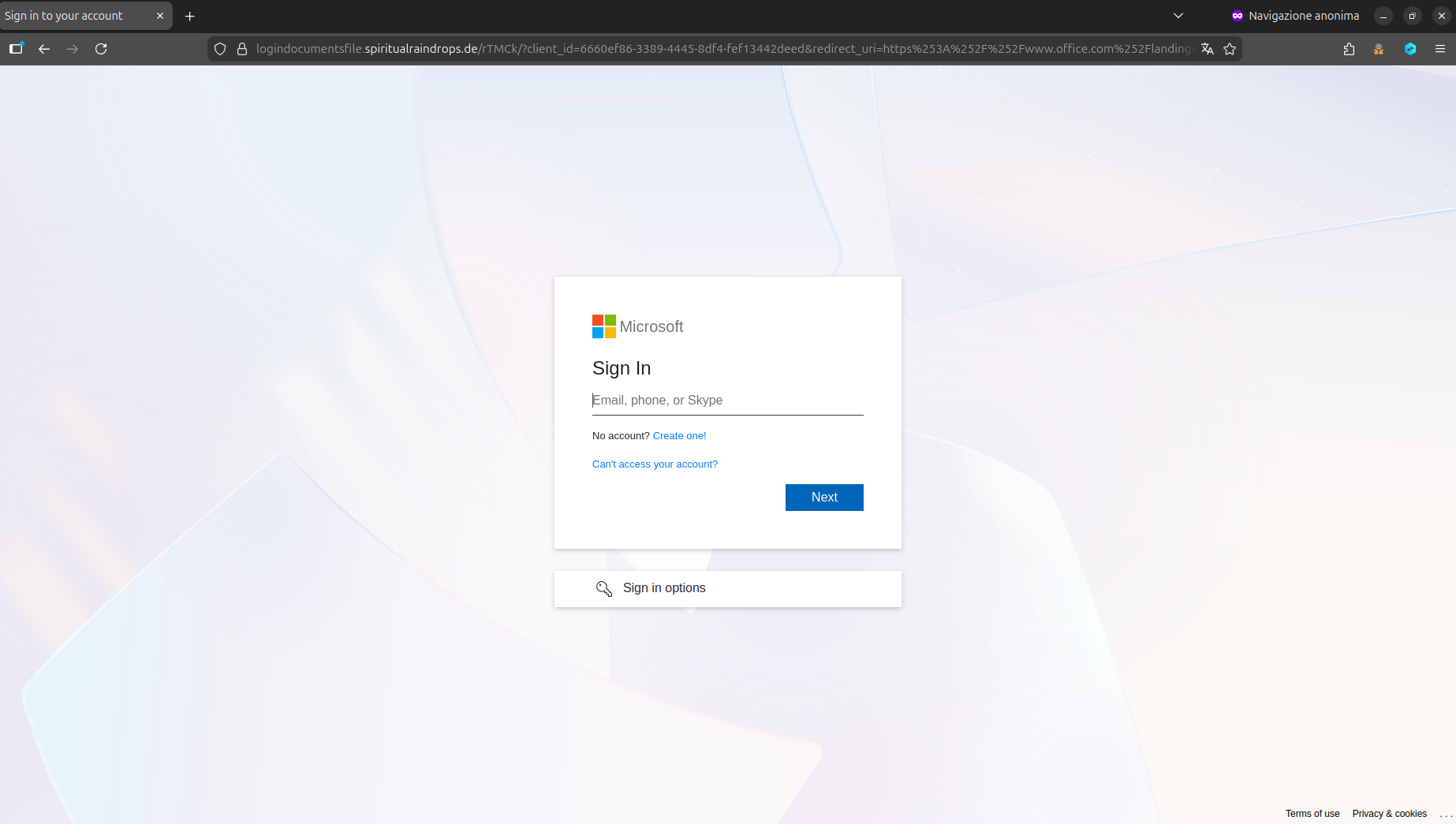 Da tale risorsa, tramite un nuovo collegamento, l’utente viene reindirizzato verso una pagina di login contraffatta, finalizzata alla sottrazione di credenziali Microsoft 365.